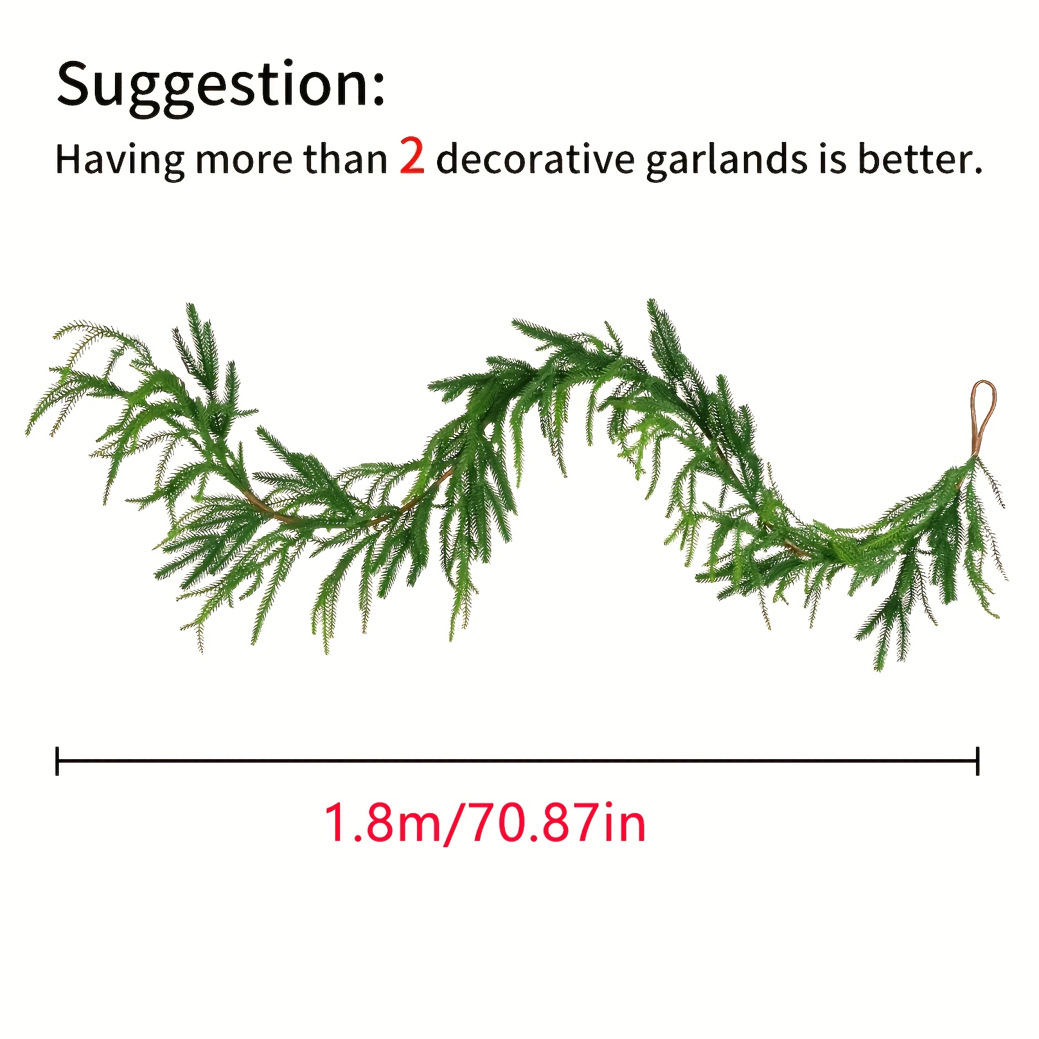 1 Piece1.8m Green Artificial Pine Branch Wreath - Perfect For Christmas, Holiday Fireplace And Window Decorations, For Indoor,outdoor Use