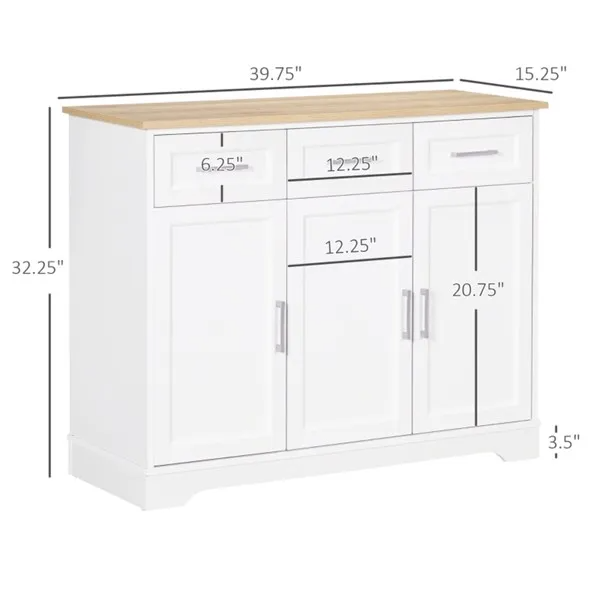• - Three drawers and two 2-tier cabinets for daily accessories and utensils